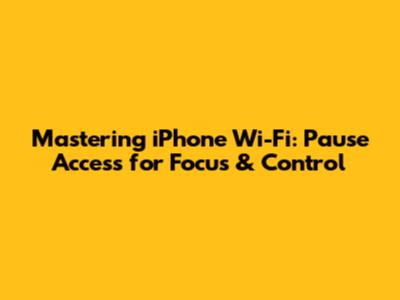 Mastering IPhone Wi-Fi: Pause Access For Focus & Control