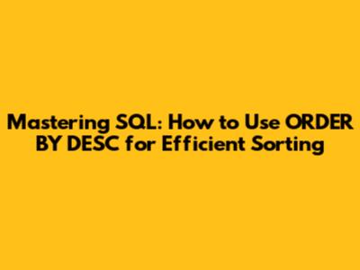 Mastering SQL: How To Use ORDER BY DESC For Efficient Sorting