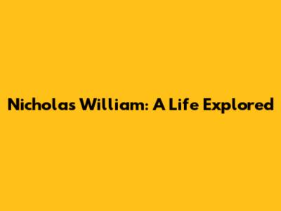 Nicholas William: A Life Explored