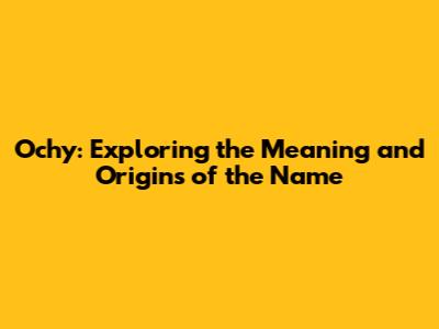 Ochy: A Name That Resonates with Individuality and Charm