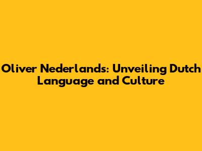 Oliver Nederlands: Unveiling Dutch Language And Culture