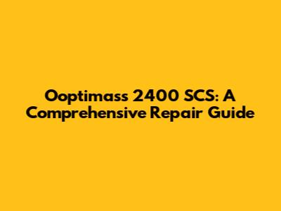 Ooptimass 2400 SCS: A Comprehensive Repair Guide