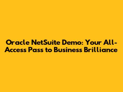 Oracle NetSuite Demo: A Comprehensive Guide