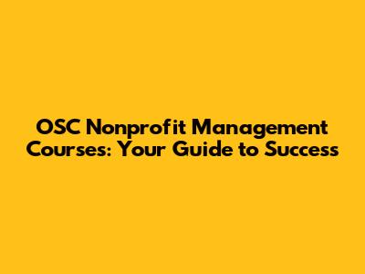 OSC Nonprofit Management Courses: Your Guide To Success