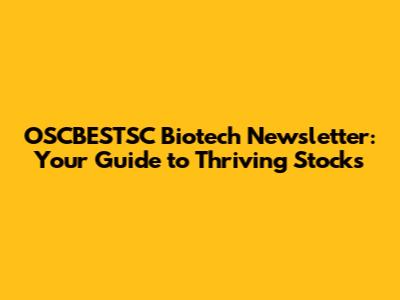 OSCBESTSC Biotech Newsletter: Your Guide To Thriving Stocks