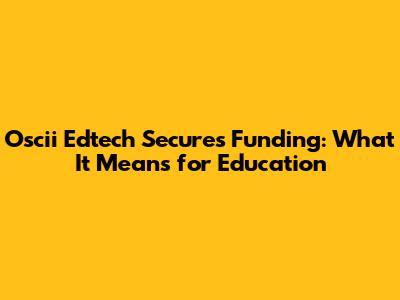 Oscii Edtech Secures Funding: What It Means For Education