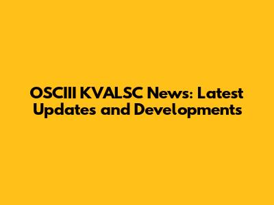 OSCIII KVALSC News: Latest Updates And Developments