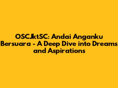 "Andai Anganku Bersuara" and organizations like OSCJktSC serve as powerful reminders of the importance of dreams, aspirations, and the communities that support them. Let this be a call to action: Find your own "Andai Anganku Bersuara" – that source of inspiration that fuels your passion. And seek out or create your own OSCJktSC – a community that empowers you to make your dreams a reality. Because when dreams speak, amazing things can happen!