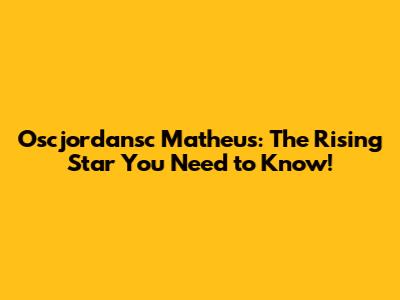 Oscjordansc Matheus: The Rising Star You Need To Know!