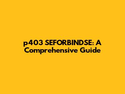 P403 SEFORBINDSE: A Comprehensive Guide