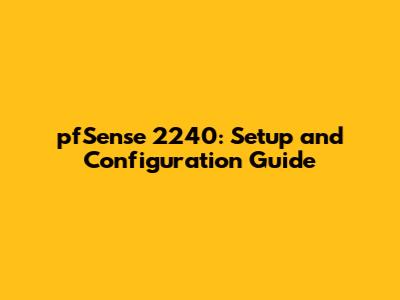 PfSense 2240: Setup And Configuration Guide