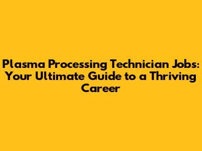 Plasma Processing Technician: Your Career Guide
