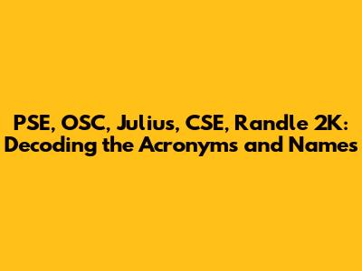 Hey guys! Ever stumbled upon a seemingly random string of letters and numbers like "PSE, OSC, Julius, CSE, Randle 2K" and felt completely lost? Don't worry, you're not alone! These kinds of abbreviations and codes pop up all the time, especially in specific contexts like finance, education, or gaming. This article is here to break down what each of these components might represent, providing you with some clarity and context. We'll explore potential meanings for each term, offering a comprehensive guide to understanding this cryptic combination. Think of it as your decoder ring for the internet – let's get started!