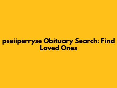Pseiiperryse Obituary Search: Find Loved Ones