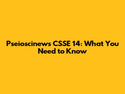 Pseioscinews CSSE 14: What You Need To Know