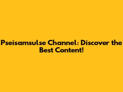 Pseisamsulse Channel: Discover The Best Content!