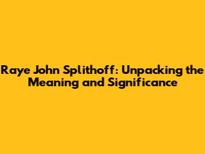 Raye John Splithoff: Meaning And Significance Explored