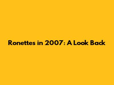 Ronettes In 2007: A Look Back
