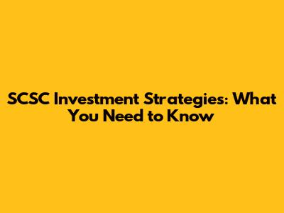 SCSC Investment Strategies: What You Need To Know