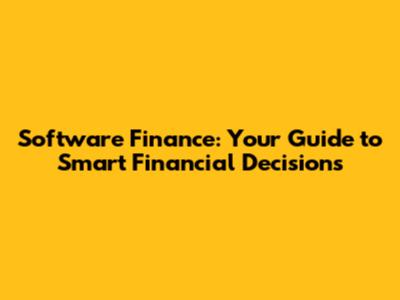Software Finance: Your Guide To Smart Financial Decisions