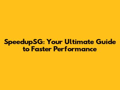 SpeedupSG: Your Ultimate Guide To Faster Performance
