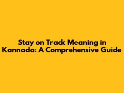 Stay On Track Meaning In Kannada: A Comprehensive Guide
