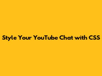 Style Your YouTube Chat With CSS