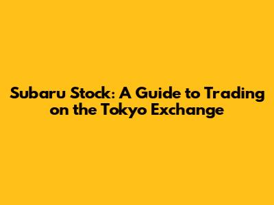 Subaru Stock: A Guide To Trading On The Tokyo Exchange