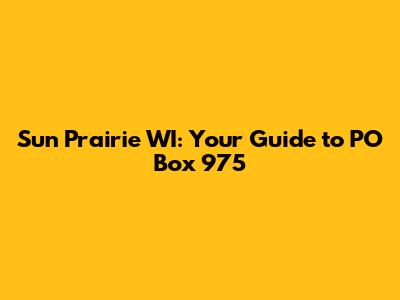 Sun Prairie WI: Your Guide To PO Box 975
