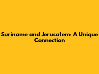 Suriname And Jerusalem: A Unique Connection