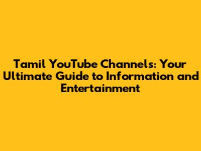 Tamil YouTube Channels: Your Guide To Info & Entertainment