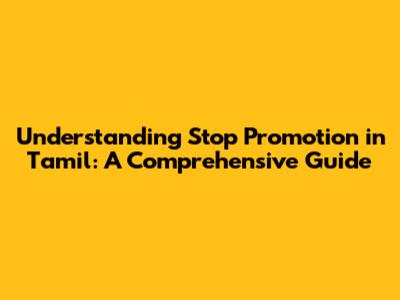Understanding 'Stop Promotion' In Tamil: A Comprehensive Guide