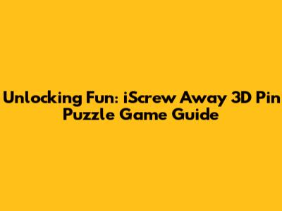 Unlocking Fun: IScrew Away 3D Pin Puzzle Game Guide