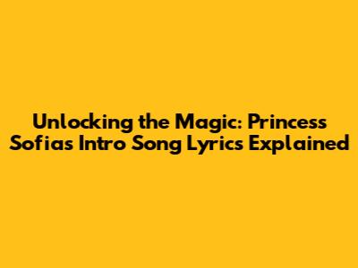 Unlocking The Magic: Princess Sofia's Intro Song Lyrics Explained