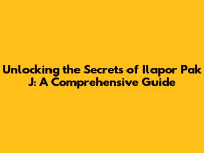 Unlocking The Secrets Of Ilapor Pak J: A Comprehensive Guide