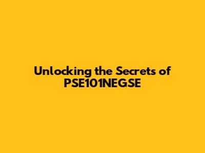 Unlocking The Secrets Of PSE101NEGSE