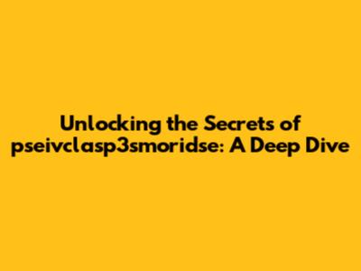 Unlocking The Secrets Of Pseivclasp3smoridse: A Deep Dive