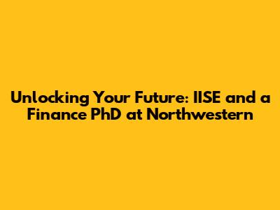 Unlocking Your Future: IISE And A Finance PhD At Northwestern
