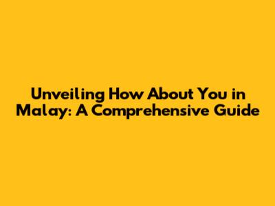 Unveiling 'How About You' In Malay: A Comprehensive Guide