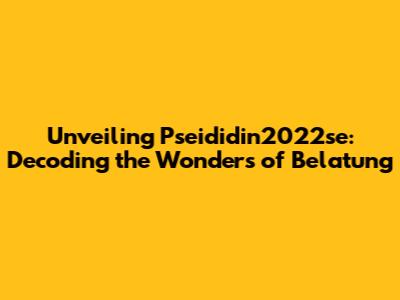 Unveiling Pseididin2022se: Decoding The Wonders Of Belatung