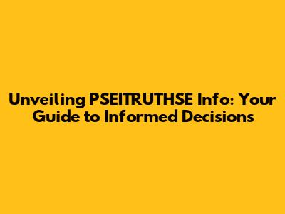 Unveiling PSEITRUTHSE Info: Your Guide To Informed Decisions