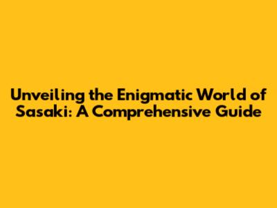 Unveiling The Enigmatic World Of Sasaki: A Comprehensive Guide