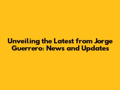 Unveiling The Latest From Jorge Guerrero: News And Updates