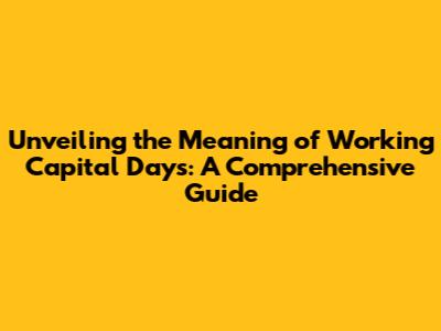 Unveiling The Meaning Of Working Capital Days: A Comprehensive Guide