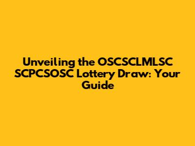 Unveiling The OSCSCLMLSC SCPCSOSC Lottery Draw: Your Guide
