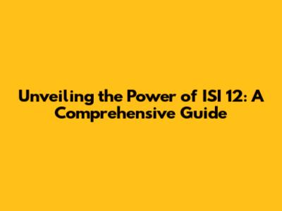 Unveiling The Power Of ISI 12: A Comprehensive Guide
