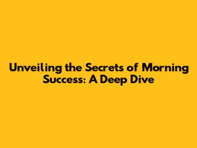 Unveiling The Secrets Of Morning Success: A Deep Dive