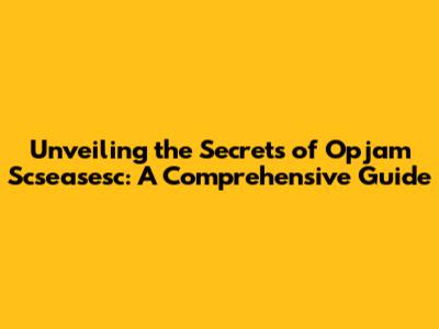 Unveiling The Secrets Of Opjam Scseasesc: A Comprehensive Guide