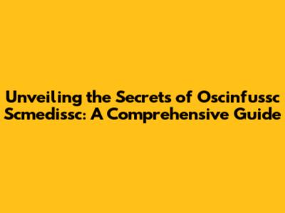 Unveiling The Secrets Of Oscinfussc Scmedissc: A Comprehensive Guide