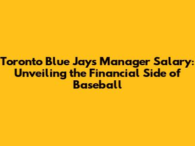 Unveiling The Toronto Blue Jays Manager's Salary Secrets